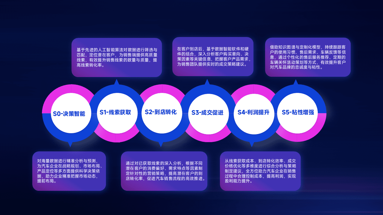通过拓宽潜在客户来源、、、、优化线索分配并提高到店转化率,,以增强销售效率。。。同时,,,利用线索数据不断优化分析模型,,,,有效提升转化率,,,扩大营销影响力。。。
